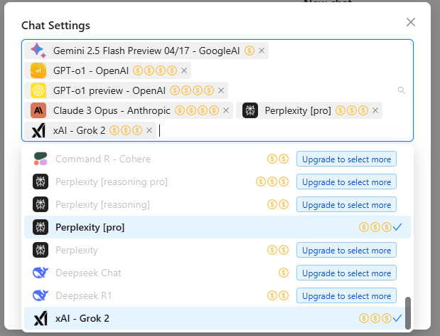 1min.ai pracuje s celou řadou AI modelů od různých poskytovatelů. Za zmínku stojí například: ChatGPT, Gemini, Grok, Midjourney, Kling, Stability a další.
