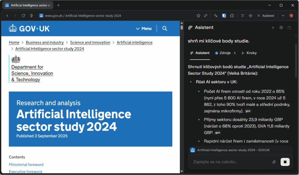 - Využívejte kontextové dotazy: Už žádné otvírání nových tabů! Ptejte se přímo na informace týkající se obsahu, který zrovna prohlížíte. Ušetříte si klikání a čas.
